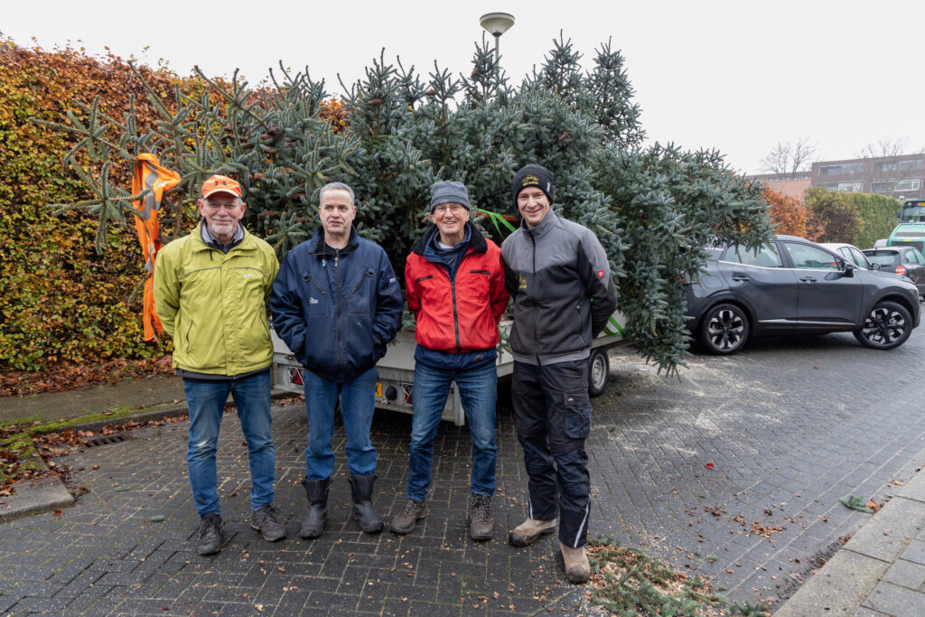 De firma Groot-Spraeland en de familie Van der Zwaan hebben hun machines en hun tijd ter beschikking gesteld om de boom te transporteren, te plaatsen en te versieren.
