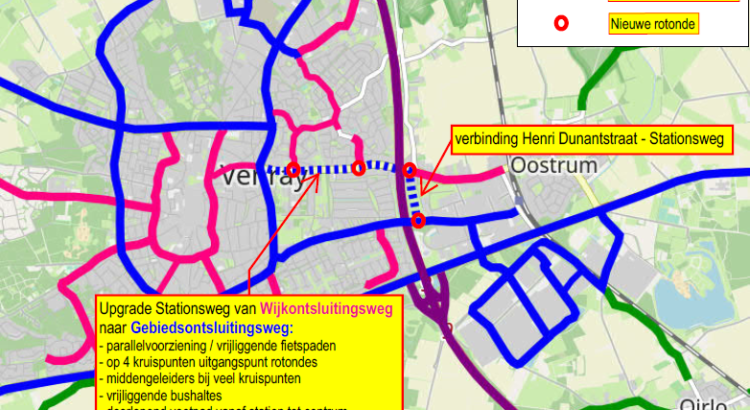Ook wordt de Stationsweg een 30 km-zone. Om dat te realiseren wordt de busbaan verlegd. De busroute loopt straks via de Henri Dunantstraat en de nieuwe verbindingsweg (Halfweg) naar de nieuwe rotonde op de Stationsweg.
